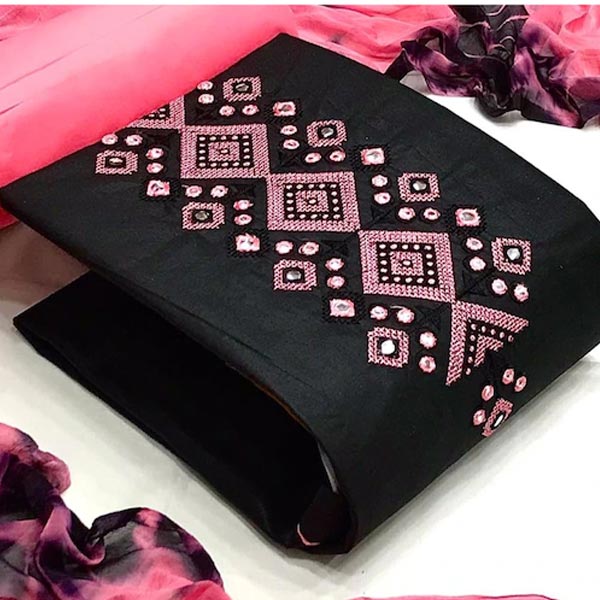 Black & Pink Embellished Unstitched Dress Material