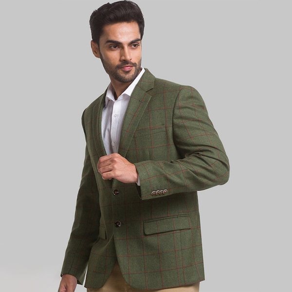 Men Green Checked Single Breasted Blazers