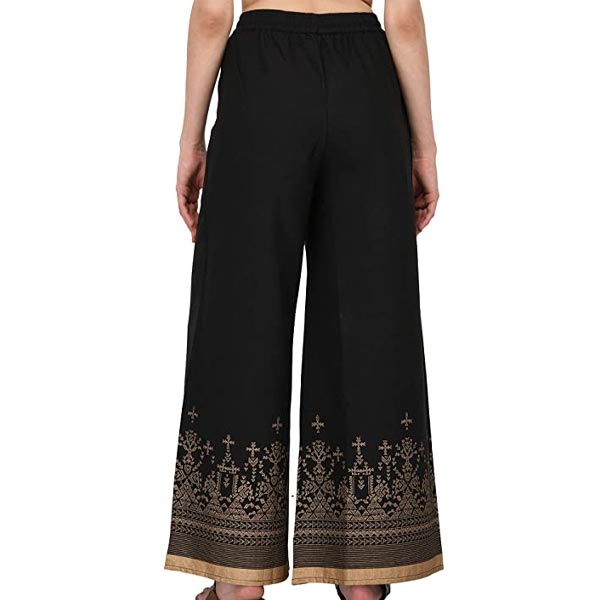 - Absolutely fashionable and trendy, these solid palazzo pants (trousers) for women are from the house of "Pistaa" and are a must-have this season. These superfine palazzo are of proper fit and high on comfort. These bottoms will become one of your favorites. This season, achieve a style that is cool and stylish by pairing this with a casual or formal top and heels or flats. Sophistically made from fine fabric, it is a beautiful piece that creates a gorgeous appeal. These bottoms will keep you at great ease all day long. It easily fits on the waist ensuring comfort without compromising on style. Features: Â a pair of mid-rise palazzo pant has a waistband with elasticated on the back and also with side pocket, interlock stitching.