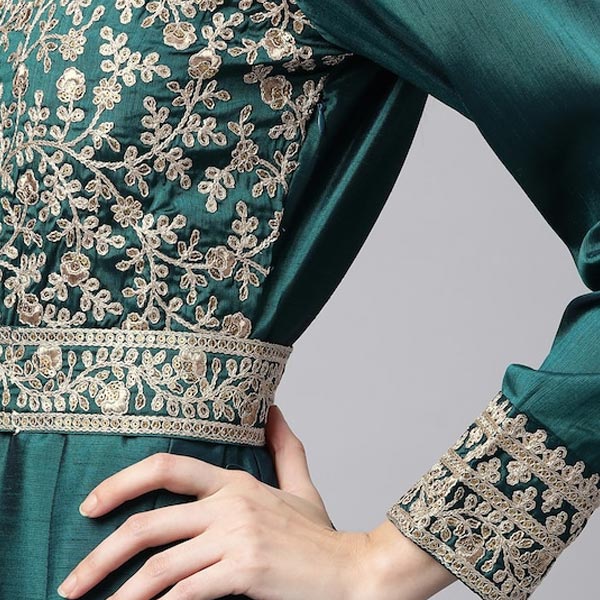 Teal Embroidered Art Silk Semi-Stitched Dress Material