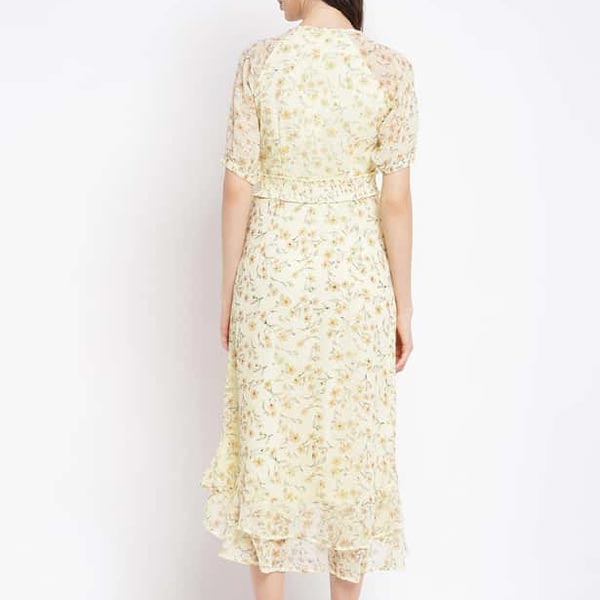 Show your exceptional style with this A-line dress, beautifully tailored with premium layered fabric, detailed with floral print design, half sleeves, V-neck, and amazing fit.