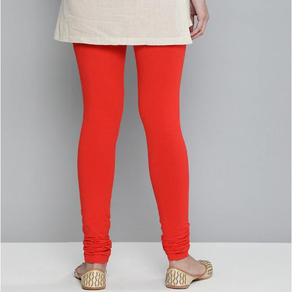 Women Red Solid Churidar-Length Leggings